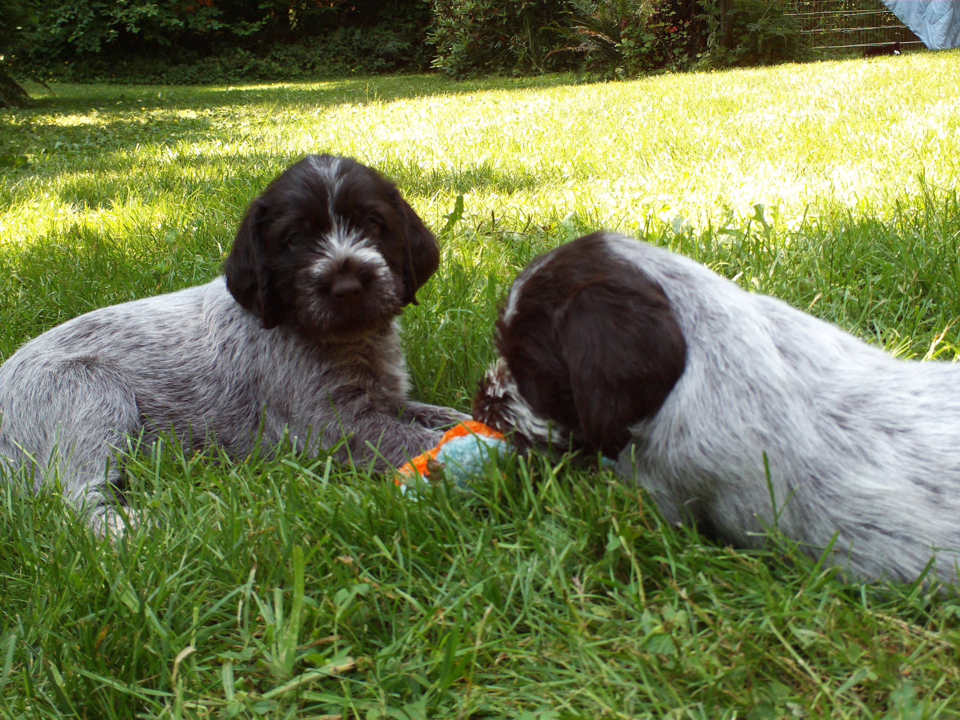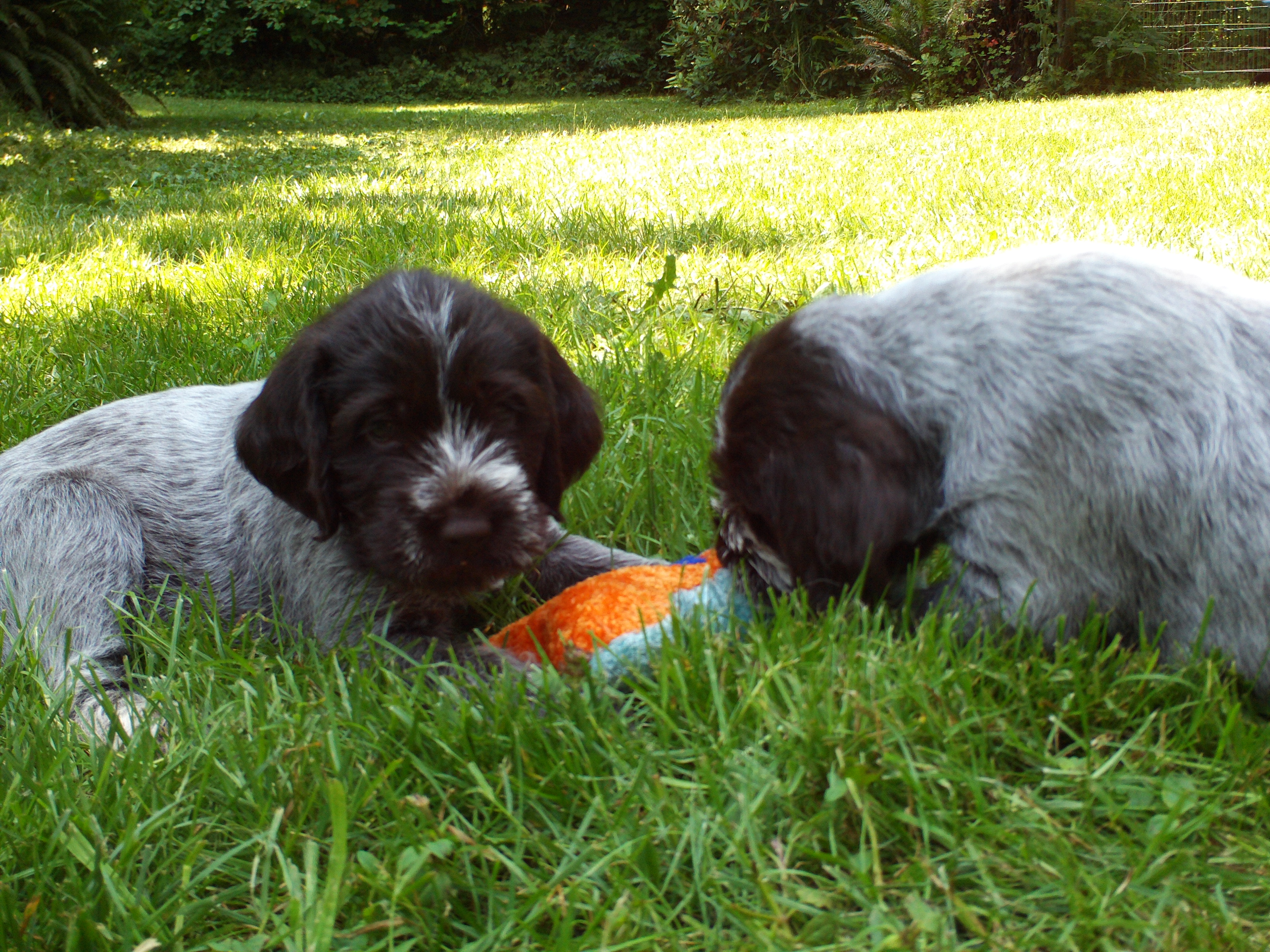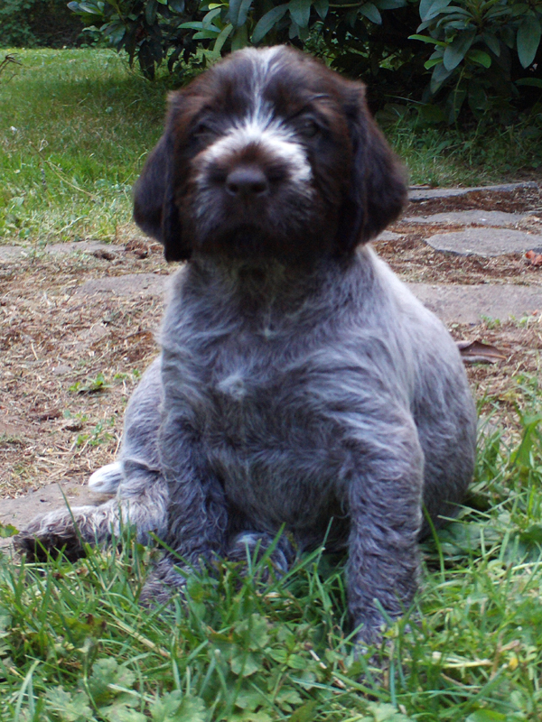 Duchasseur Shiksa is our pure-bred Wire-Haired Pointing Griffon.  Isn't she precious?  She is 4 years old and just had her first and only litter. We bred her with Griffe d'Automne Silver Bullet Four lovely puppies were whelped on June 21st. Three males and one female.Use the links below to view Gordon Creek Mr. Mazel's pictures! I will be updating this page with new photos as I can until he arrives at his new home. As of August 21st Mazel is at his new family in Sherwood, Oregon.